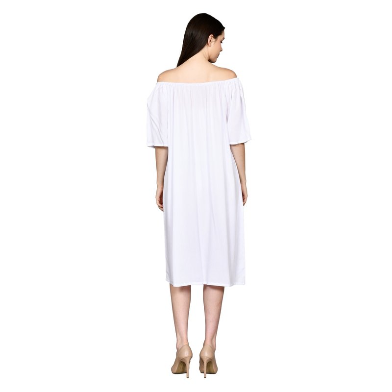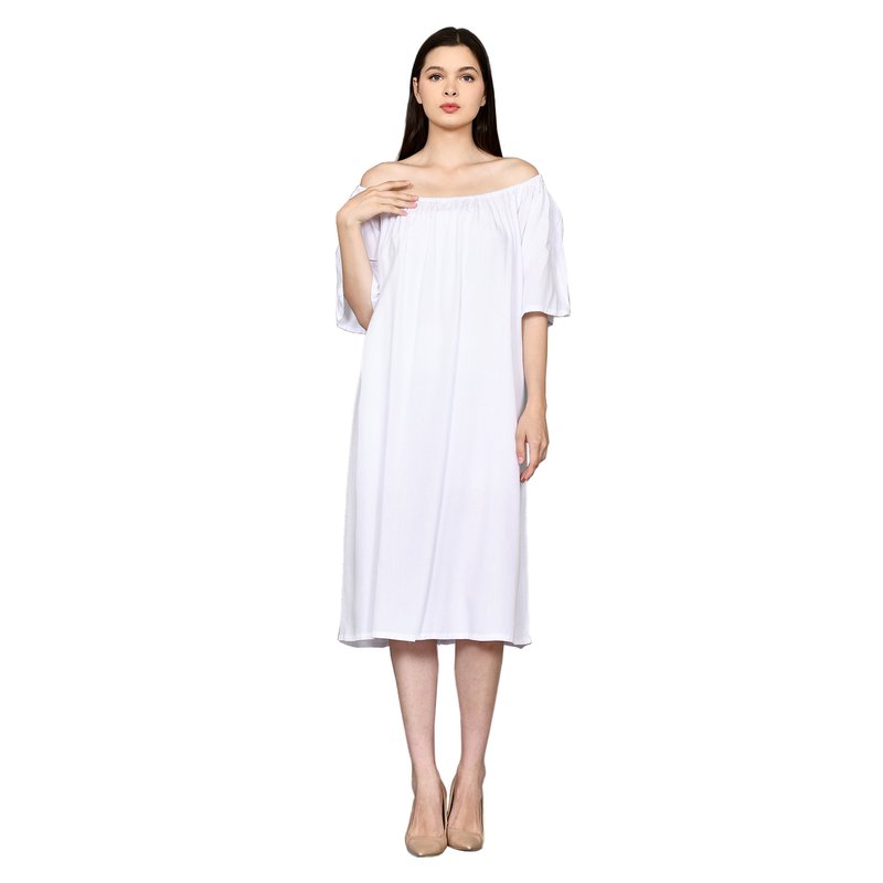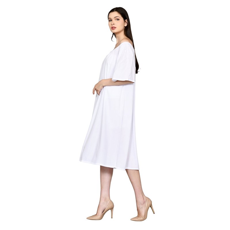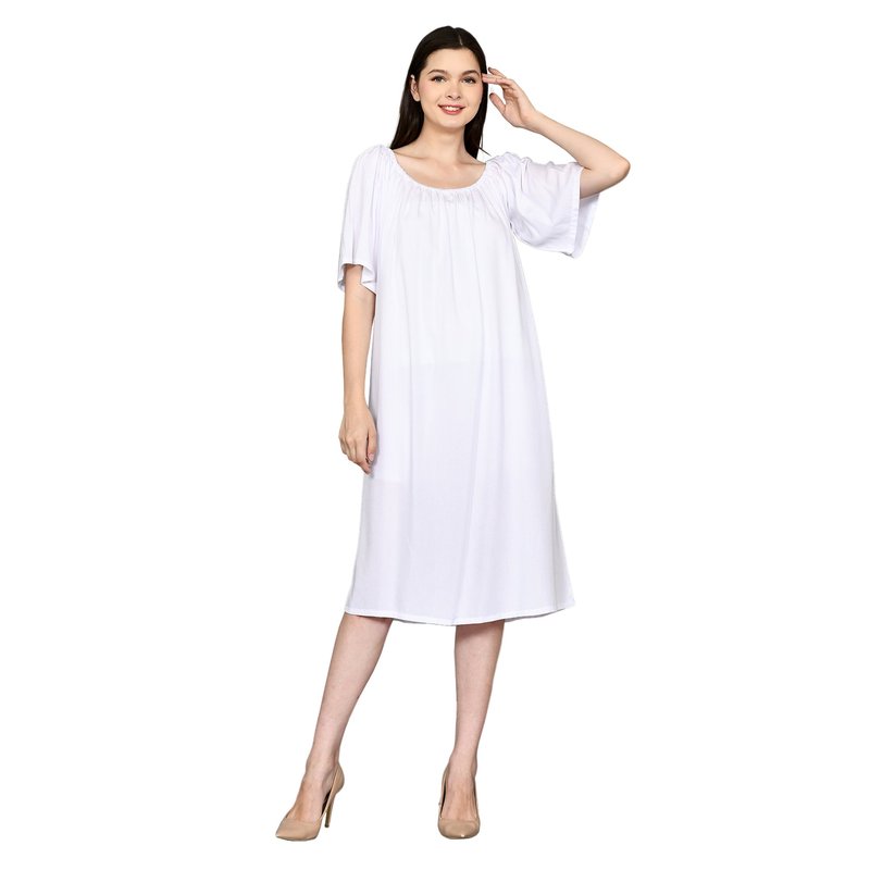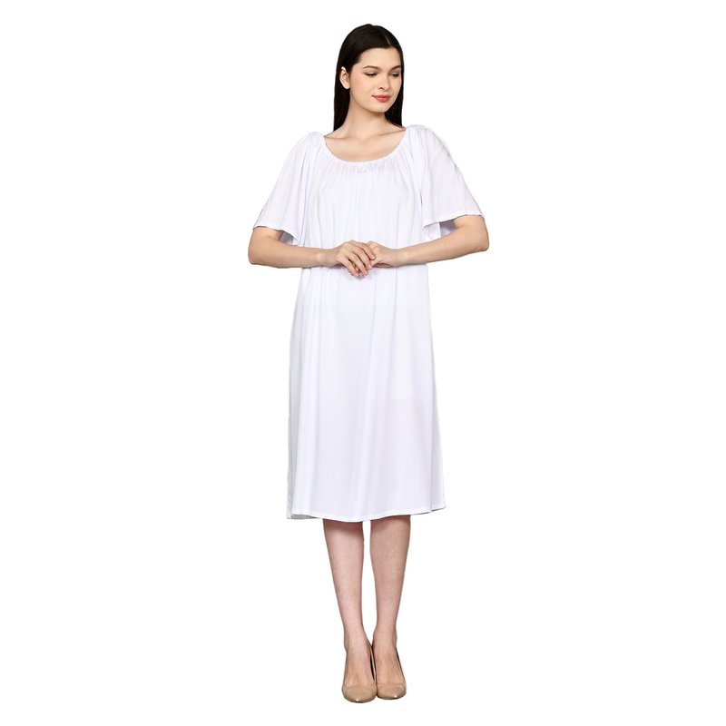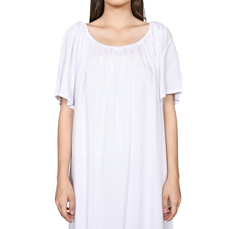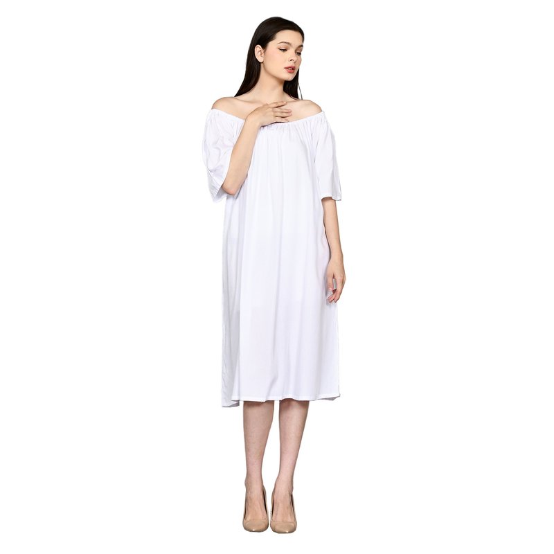 Vintage Womens Nightgown Simple Off Shoulder Dress with Half Bell Sleeve Solid White Comfy Nightwear Dress for Female DRN004-000R1