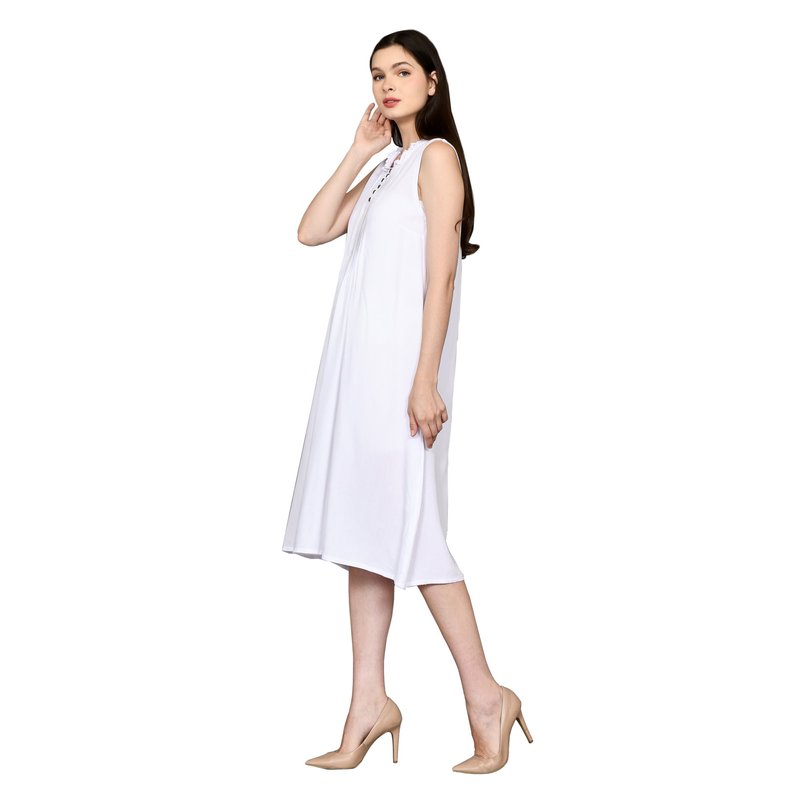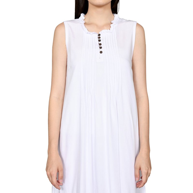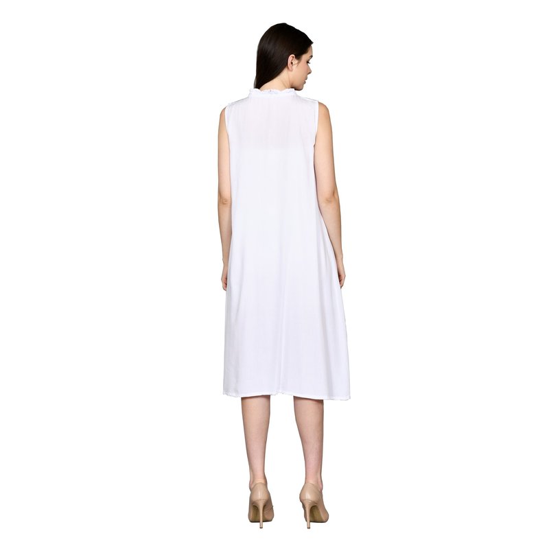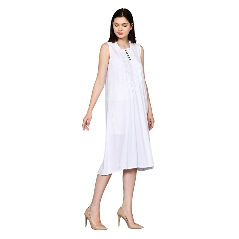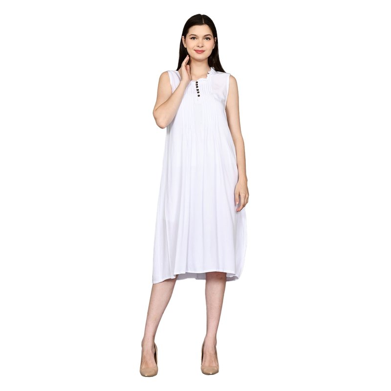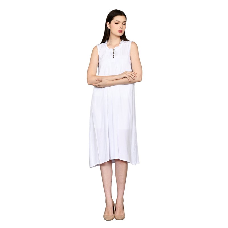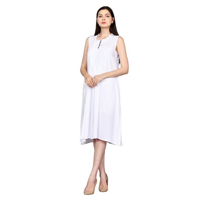 Shirred Neck Detail with Front Button Up Sleeveless Comfy Midi A Line Dress for Women Minimalist Flowy Casual Summer Nightgown DRN005-000R1