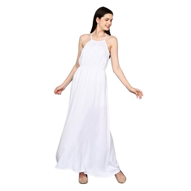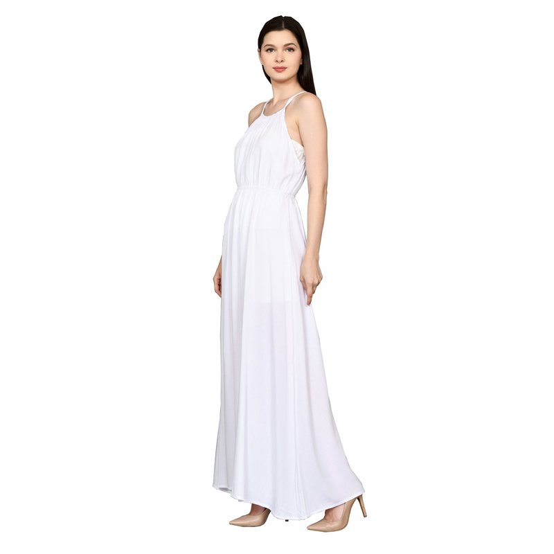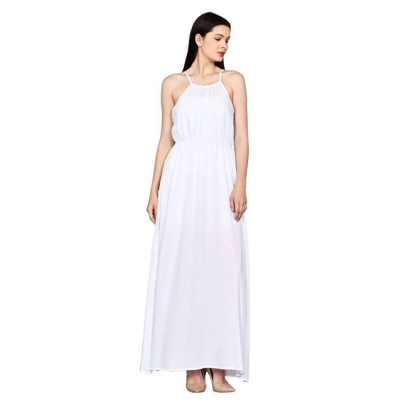 Loose Fitting Dress Rayon Dress Tie Back Dress Spaghetti Straps Dress Flowy Dress Maxi Sleeveless Sundress in Solid White DRN007-000R1