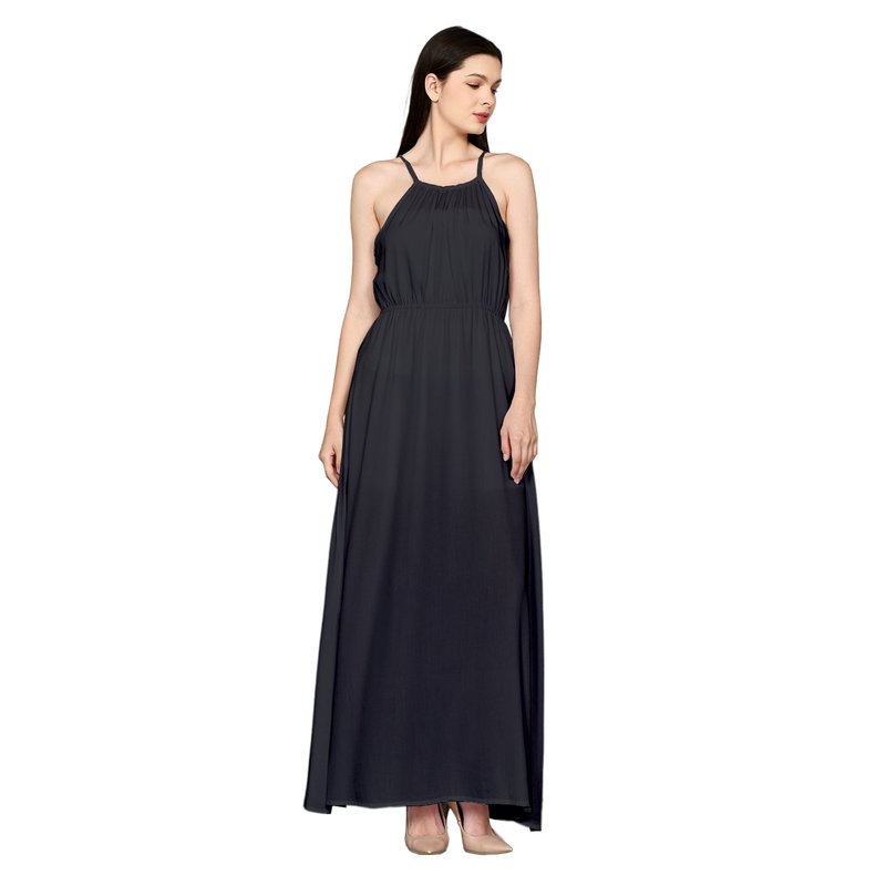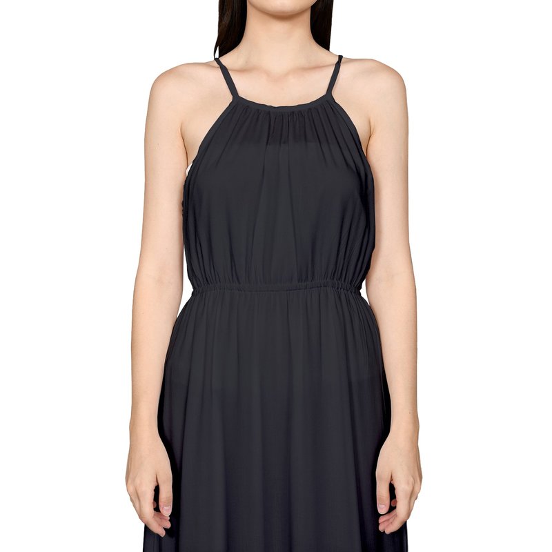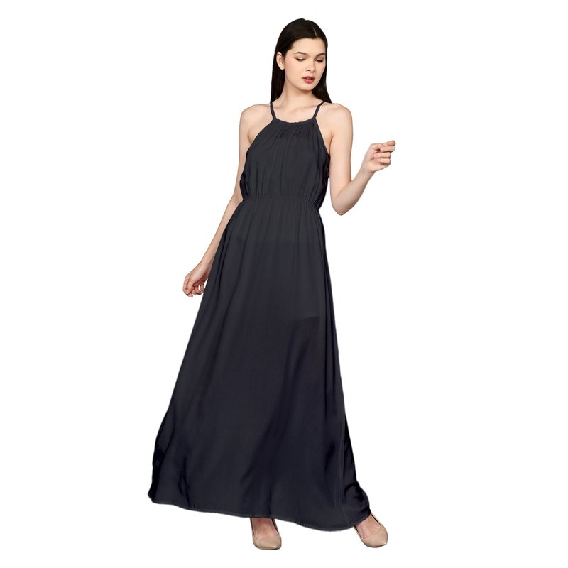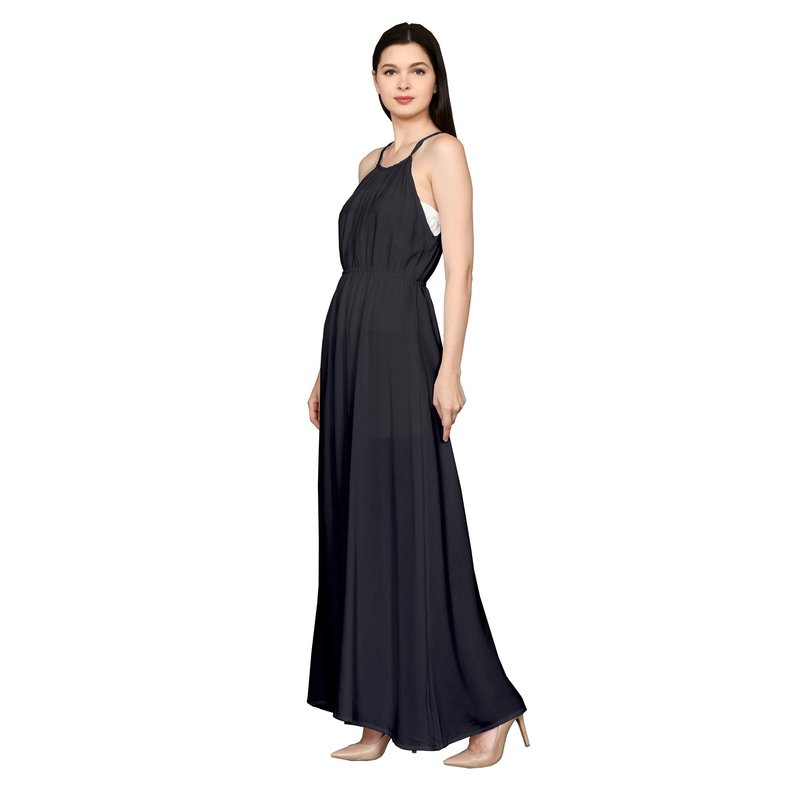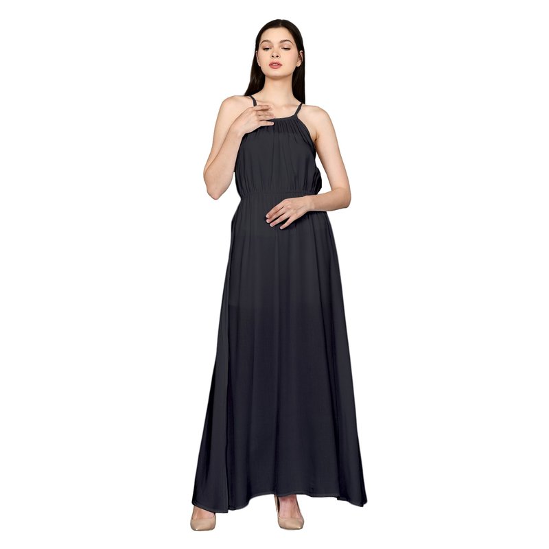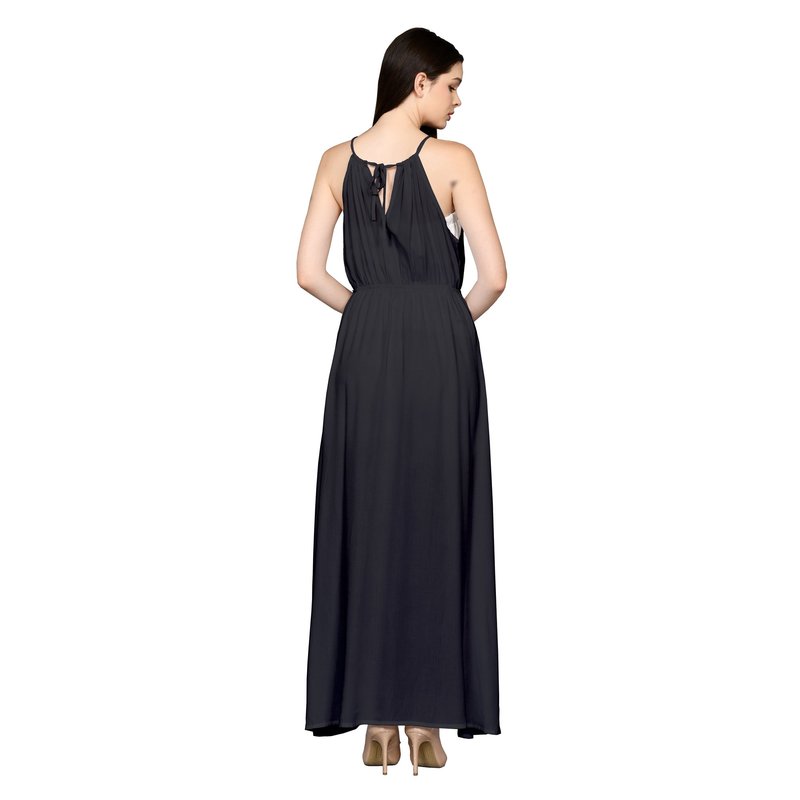 Loose Fitting Dress Rayon Dress Tie Back Dress Spaghetti Straps Dress Flowy Dress Maxi Sleeveless Sundress in Solid Black DRN007-001R1