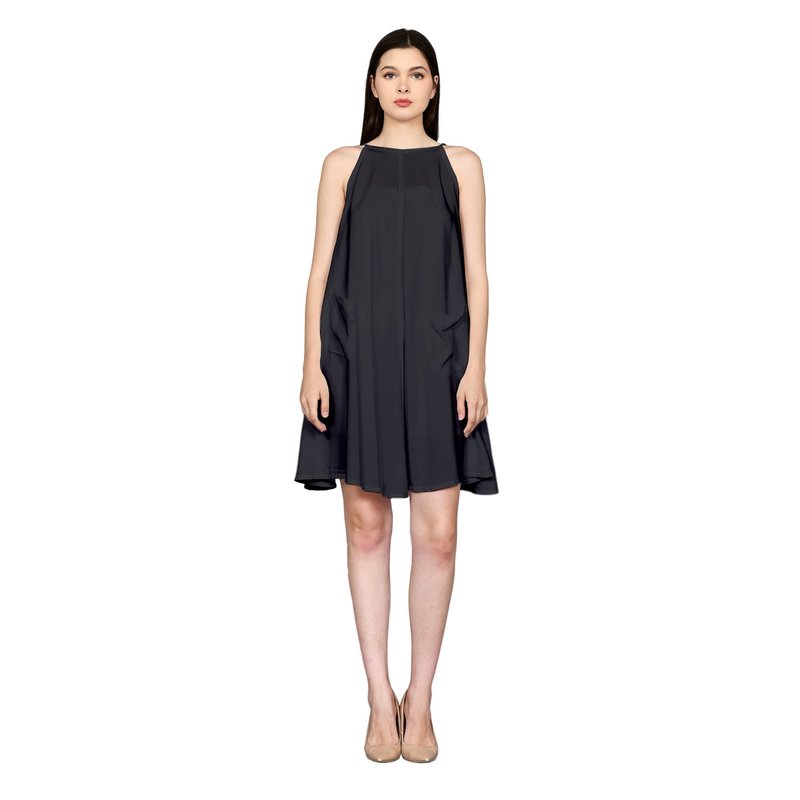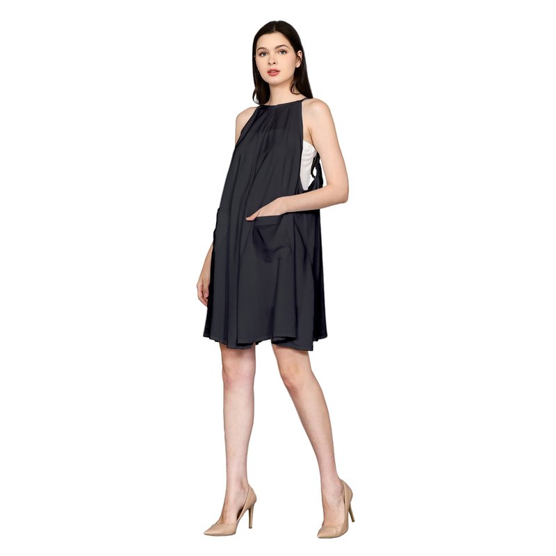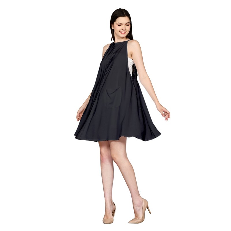 Open Back Design with Spaghetti Strap Sundress and Basic High Boat Neck Mini Dress in Solid Black DRN009-001R1