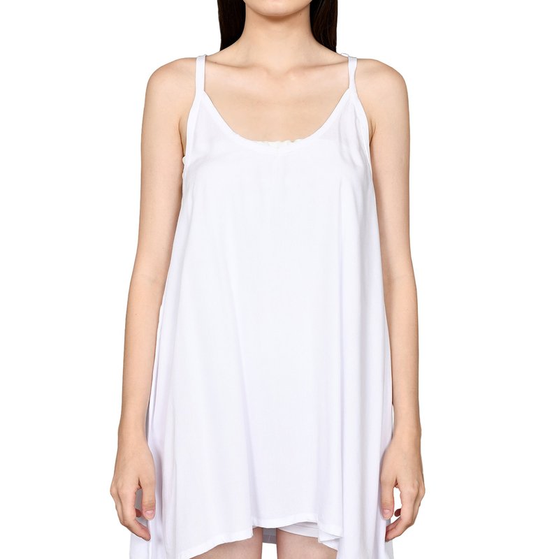 Comfy Beachwear Mini Dress with Shoulder Tie Spaghetti Straps and Deep V Neck Detail in Solid White for Summer Holiday Outfit DRN010-000R1