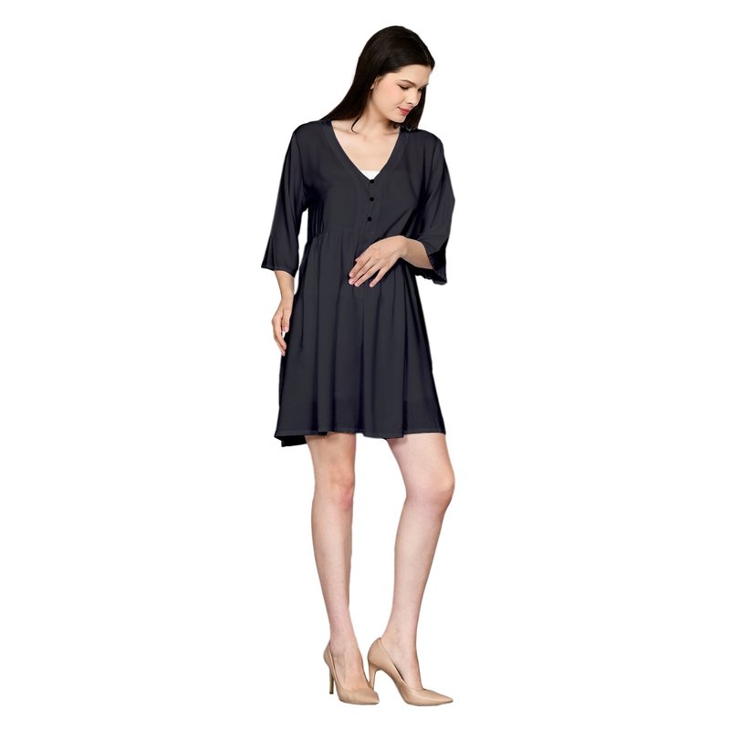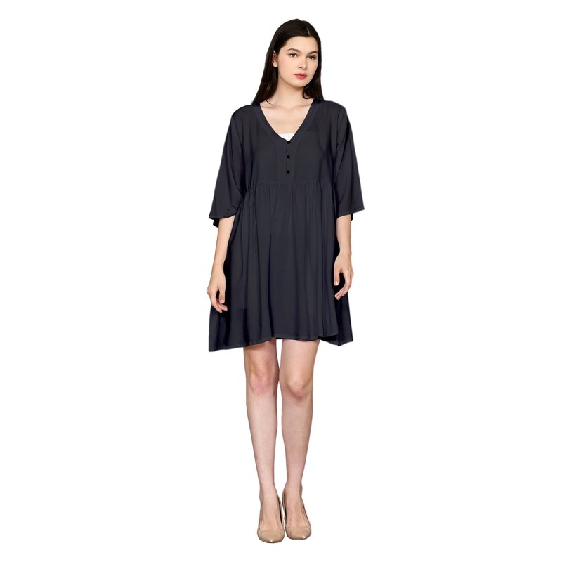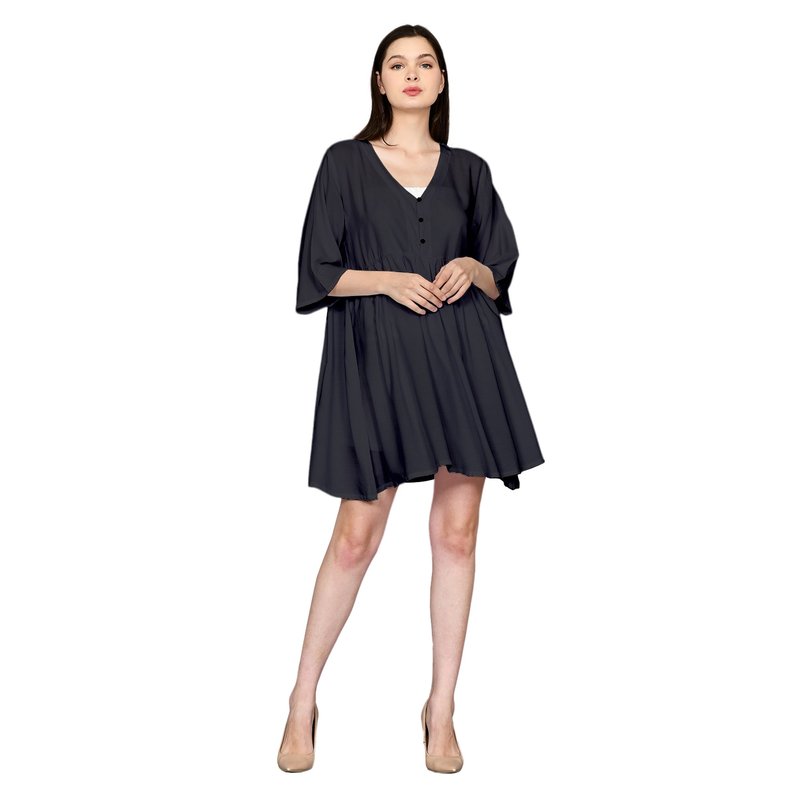 Stylish Half Bell Sleeve Loose Mini Dress with V Neck and Front Button Up Detail for Simple Summer Outfits DRN022-001R1