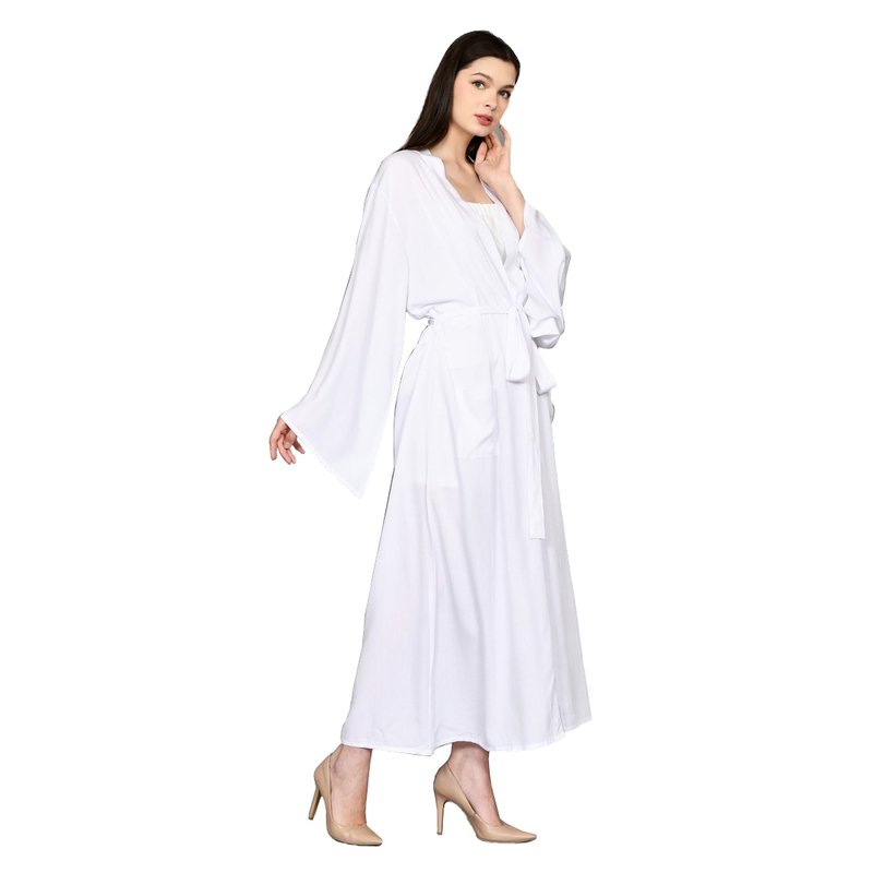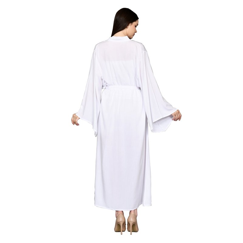 Female Beachwear Outfit Open Front Belted Kimono with Long Wide Sleeve Robe Soft Rayon Material in Solid White KMN001-000R1