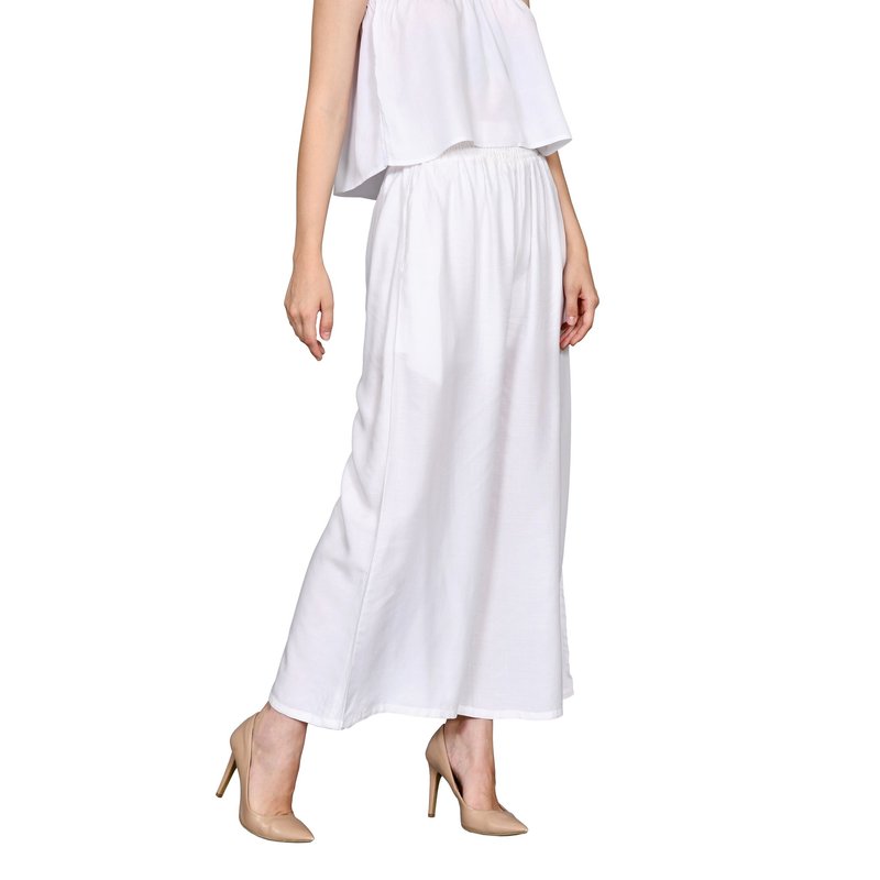 Soft Rayon Cullote with Shirred Detail and High Waist Wide Leg in White for Comfy Womens Casual Fashion Pants PT007-005R1 - PT007-005R1