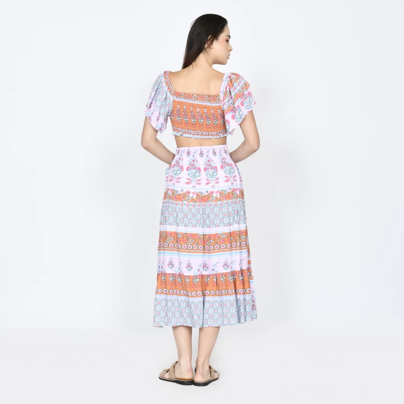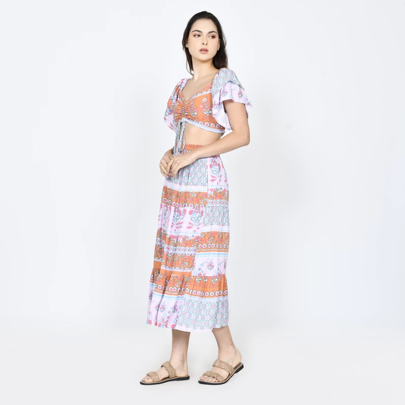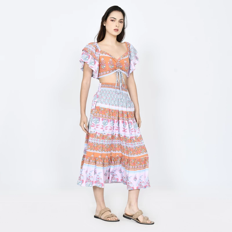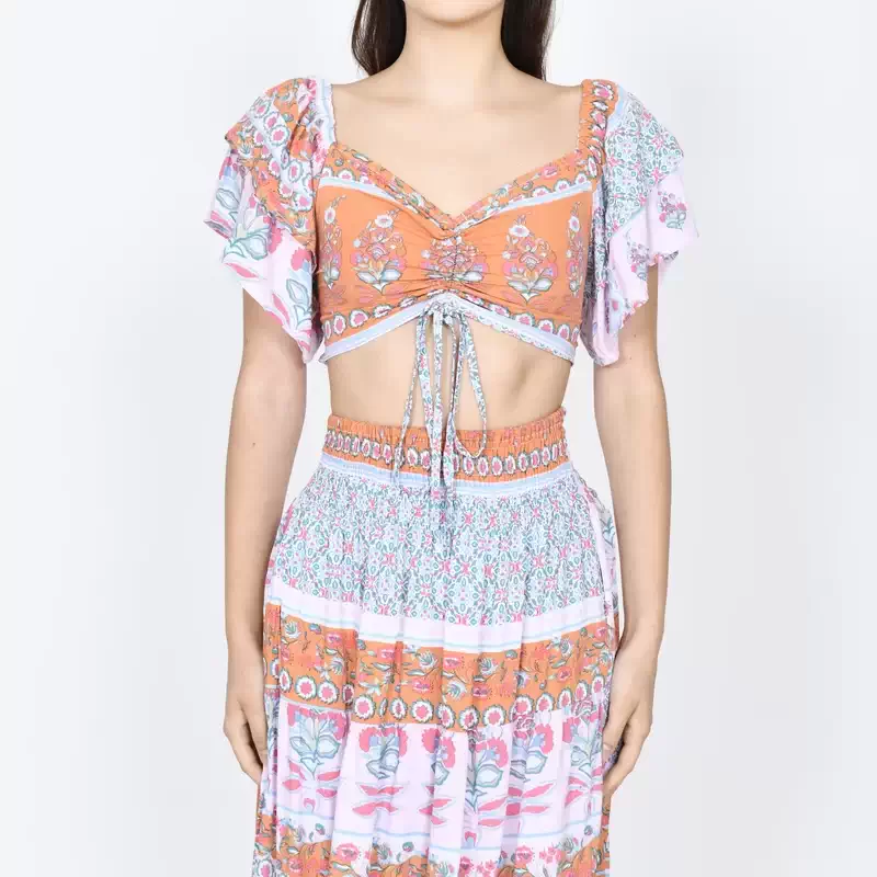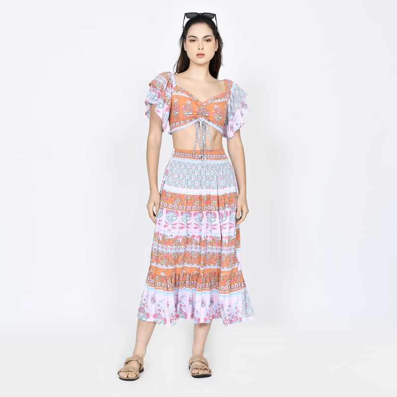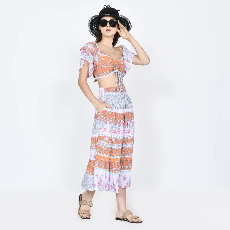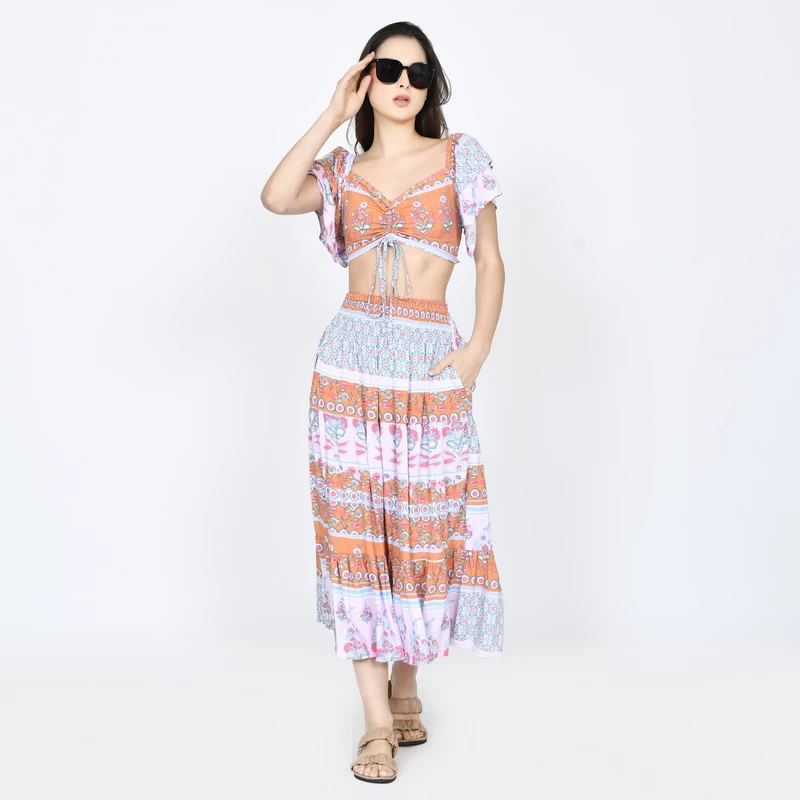 Two Piece Stylish Summer Sets in Solid Black with Flowy Off Shoulder Crop Top and Sexy Long Slit Wrap Skirt for Vacation Outfit ST002-001R1 - ST002-001R1