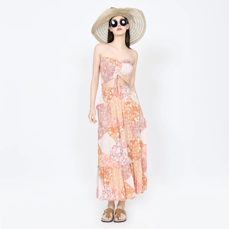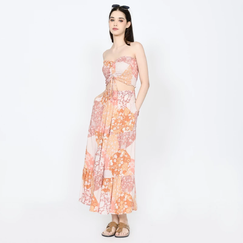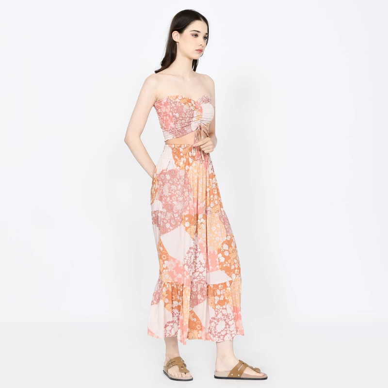 Flowy Off Shoulder Crop Top and Sexy Long Split Wrap Skirt Two Piece Stylish Summer Sets in Solid Red for Vacation Outfit ST002-000R1 - ST002-000R1
